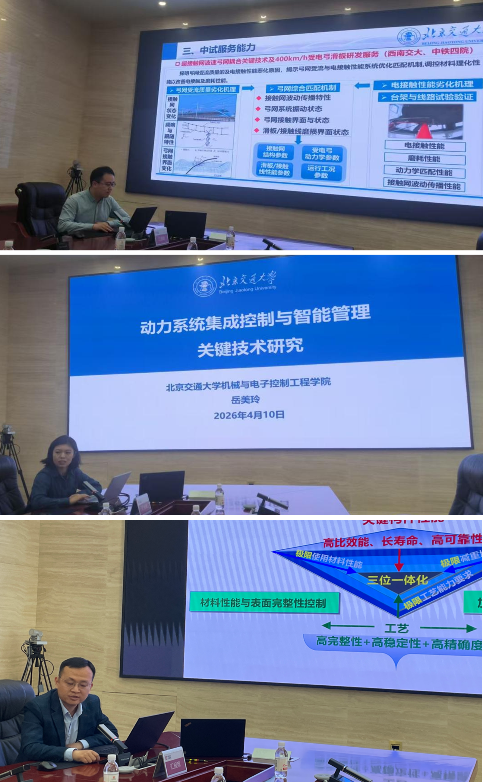 王文静代表学院对中车四方股份公司多年来在人才培养、科学研究等方面给予的支持和帮助表示感谢。她希望“十五五”期间,进一步深化产教融合、科教融汇,推动人才培养与企业需求精准对接,实现更多科研成果向企业应用高效转化,以共建创新研究院为契机,构建长效的产学研协同机制。李洪萌介绍了学院概况和北交雄安创新研究院规划,教师代表分享了在智能制造、结构可靠性设计、先进润滑、新能源等方面的科研成果。